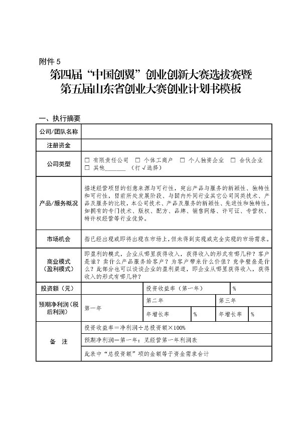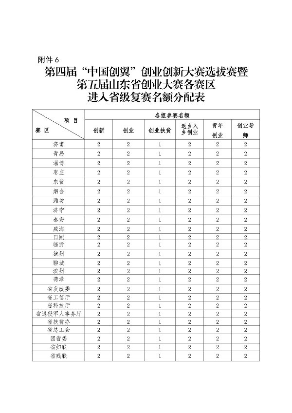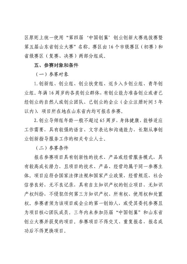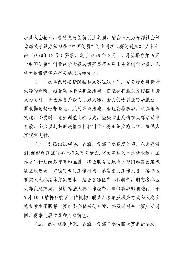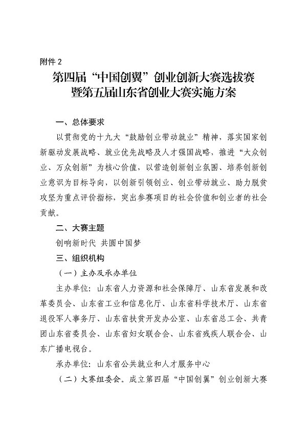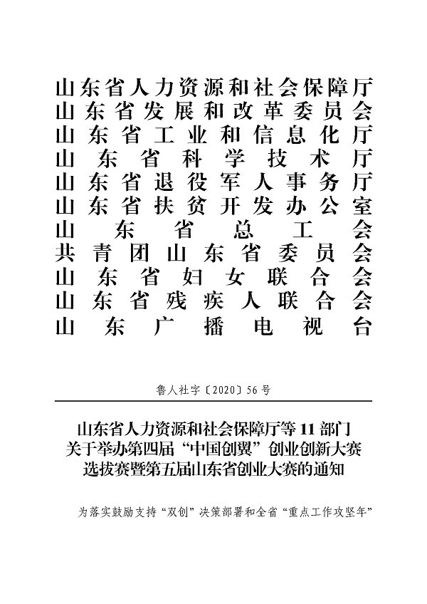 山东省人力资源和社会保障厅等11部门关于举办第四届“中国创翼”创业创新大赛选拔赛暨第五届山东省创业大赛的通知