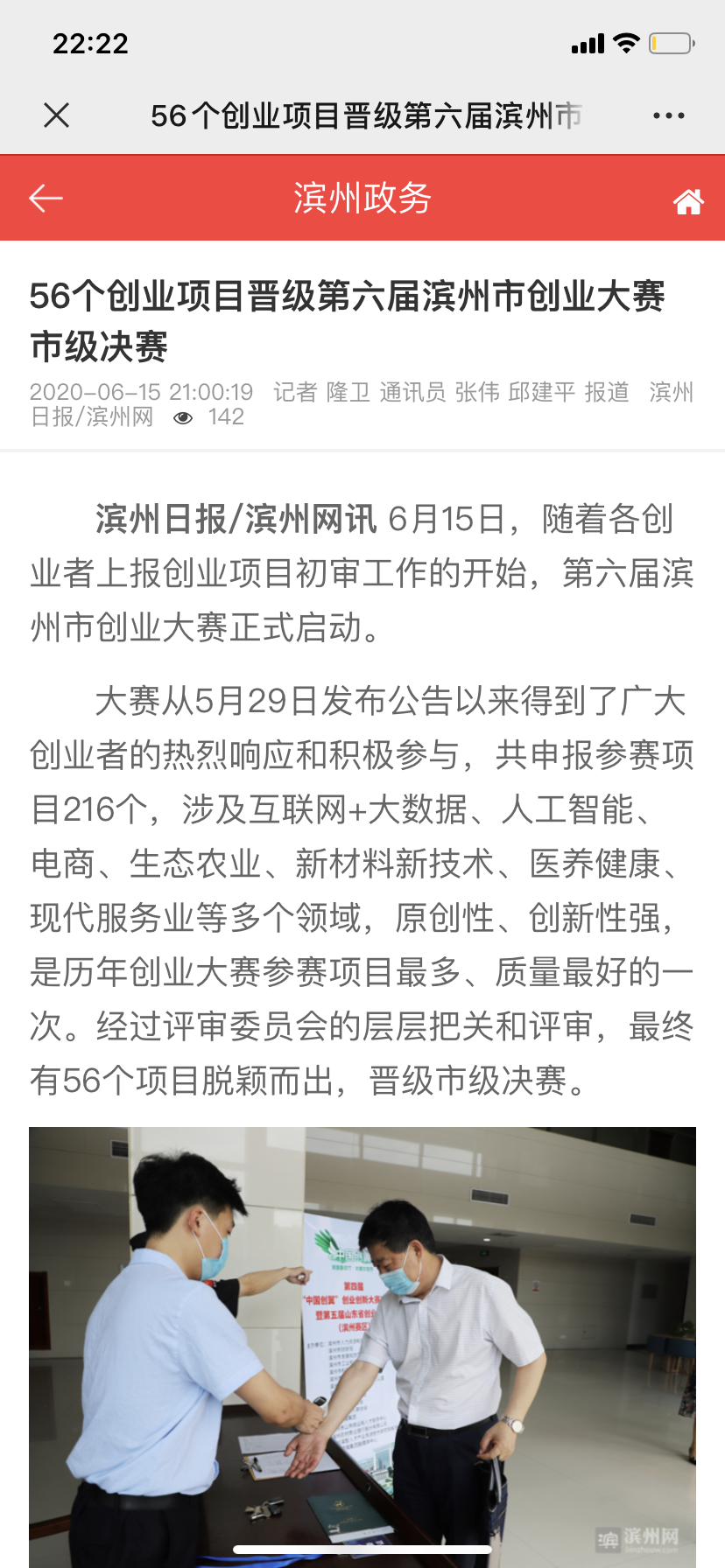 第六届滨州市创业大赛初审结束,56个创业项目(导师)脱颖而出